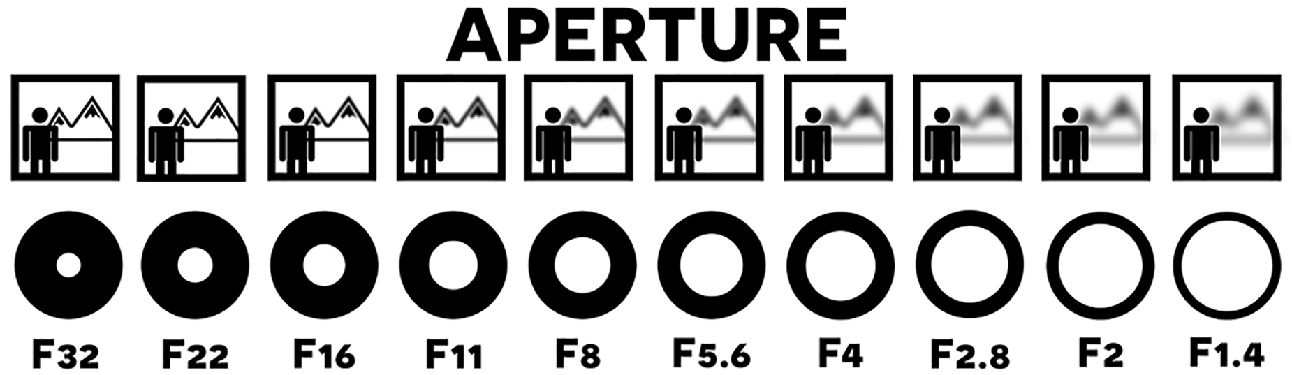 Probably we have all had the experience of playing with a magnifying glass as children, trying to burn a hole through a piece of paper by focusing sunlight. There is one specific position of the lens which causes a small bright dot to appear on the sheet of paper – this is the projection of the sun. A magnifying glass is a simple lens similar to a monocle and if you measure the distance between the magnifying glass and the projection of the sun, you will find the exact focal length of this lens. And so – the greater the focal length of the lens, the lower its light power, which is inversely proportional to focal length. To put it simply, the light power (aperture) is the ratio between the maximum diaphragm opening and the focal length of the lens. If you have a lens with a 50mm maximum opening and focal length of 100mm, its light gathering power will be 50/100 or 1:2 . For such a lens we say that it has aperture f/2. If a 50mm maximum opening corresponds to focal length of 200mm, its respective light-gathering power will be 1:4 or aperture f/4. A lens with aperture f/2 lets in 4 times more light than one with aperture f/4. Often beginners find it hard to understand why a higher aperture value means less light. Why a lens with aperture 4 lets in less light that one with aperture 2. The explanation is simple – these are denominators.in a fraction. 1:2 is a greater number than 1:4 the same way half a pizza is more than a quarter.