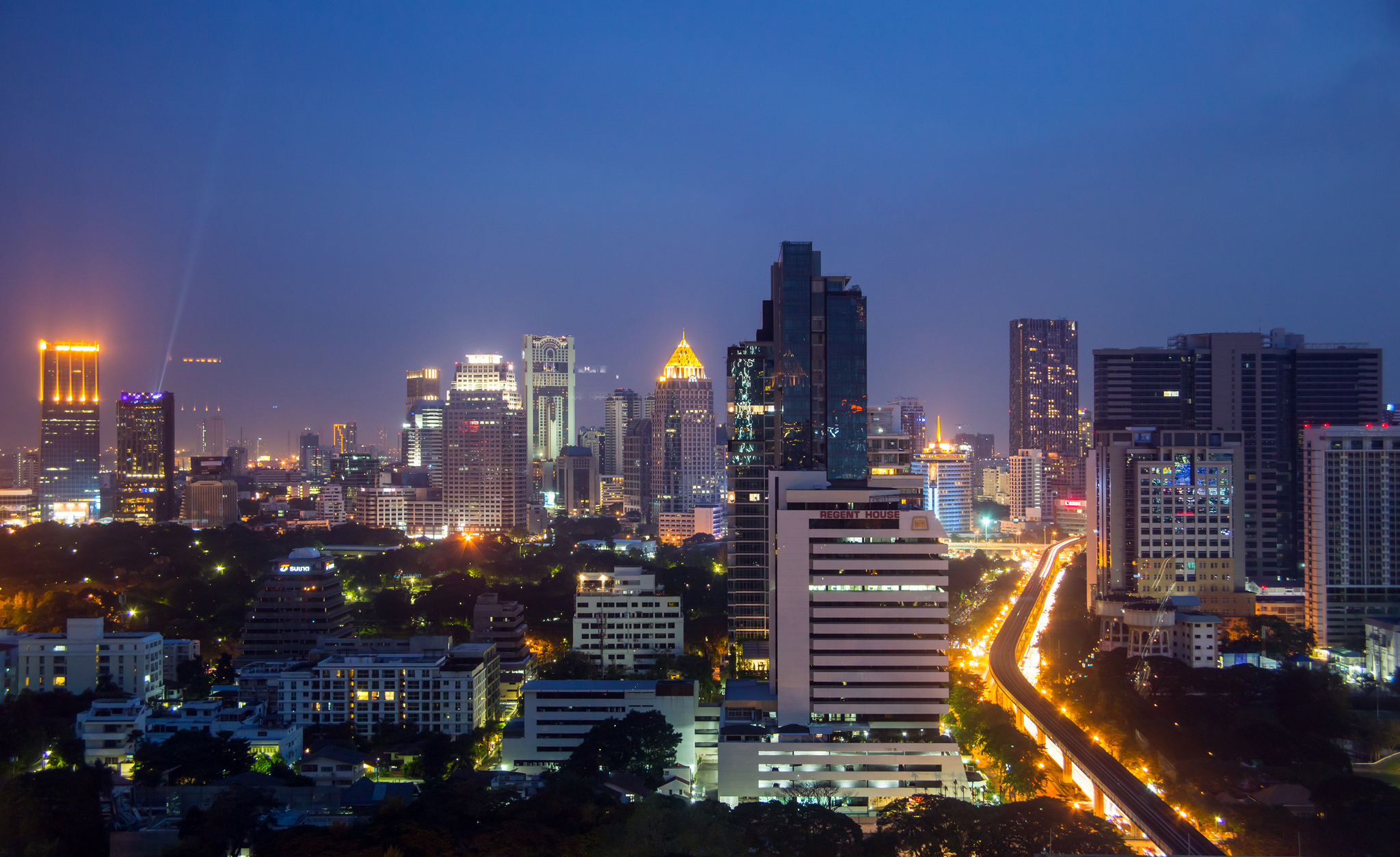 - You can take interesting photos of the night lights in the city from a tall building in the centre, from an overpass with car traffic below or at street level. Situate yourself in such a way as to avoid any bright objects around you coming into the field – for instance a bright lamp or a floodlight. If you are at street level, do not shoot cars from the front because their powerful headlights will overexpose the photograph.
