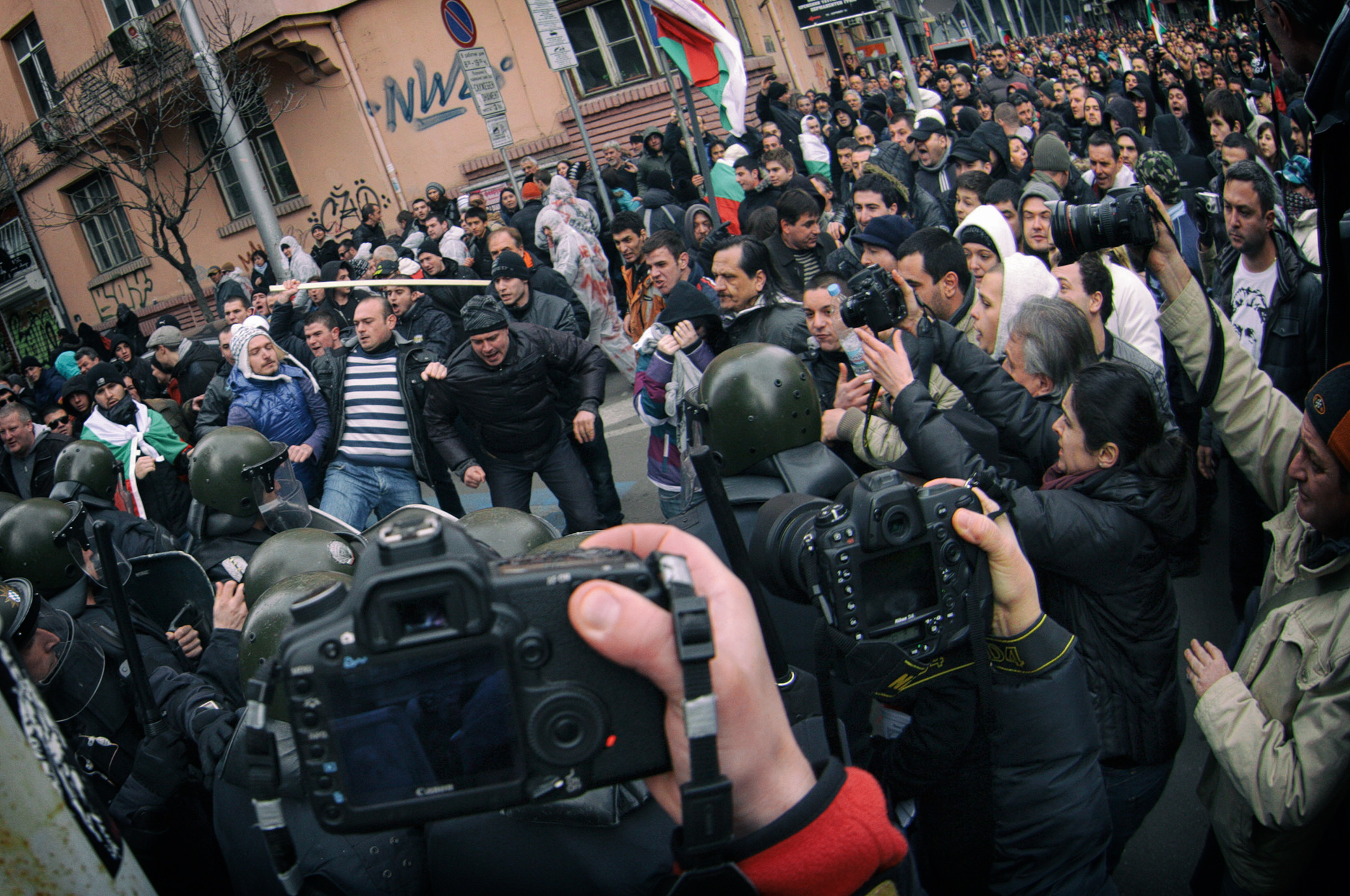 At concerts, street demonstration, football matches and other mass events, the people in front of us often prevent us from seeing the stage and we need to raise the camera to a high point of view. Having a tilt screen is a definite advantage in such situations because it allows us to compose the photo the way we want to without any blind shots, just like the reporters in the next shot.