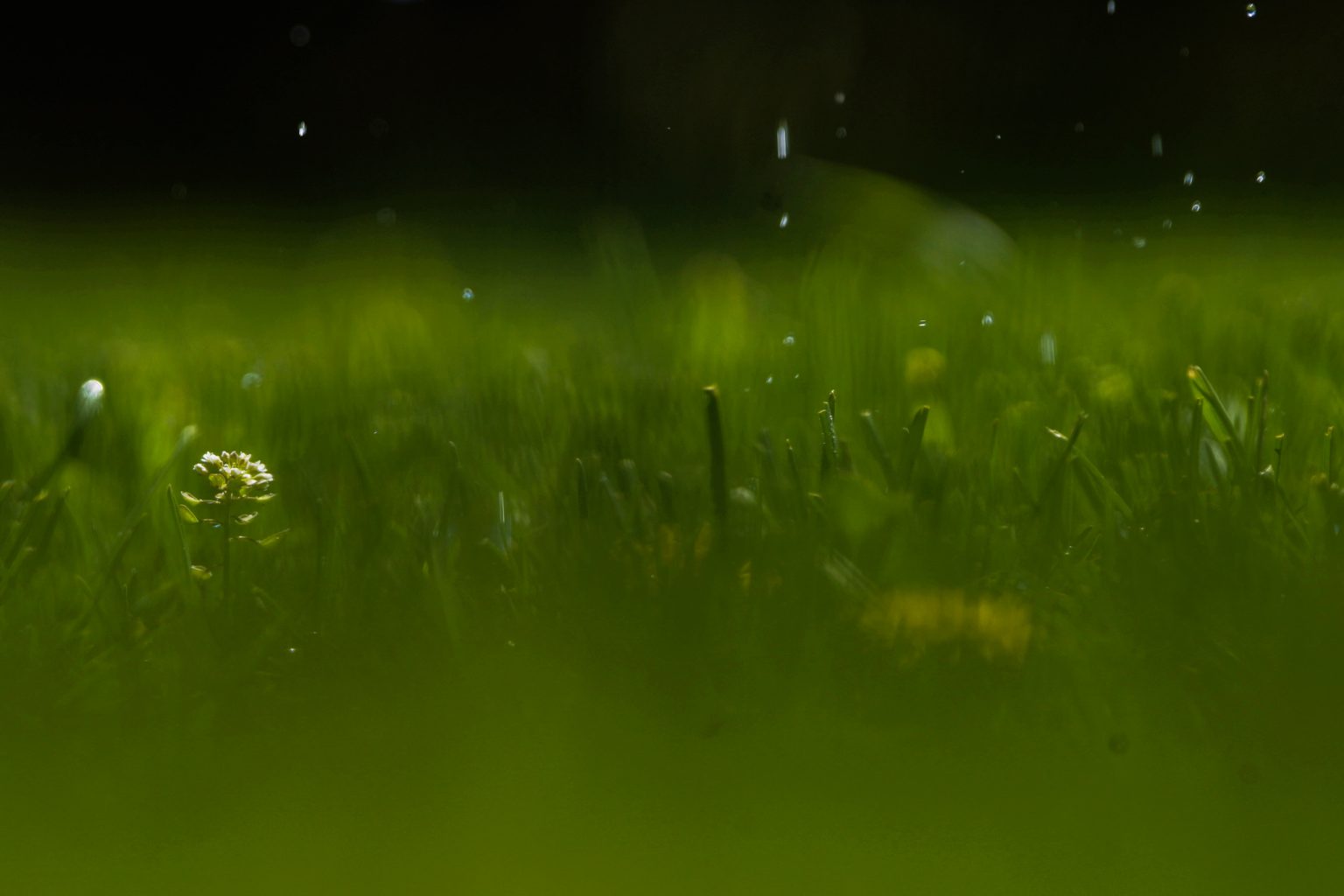 Sony A9ii, Sony 70-400 / 5.6 – The low point of view, the strong defocus and the compression of the telephoto lens isolate only this small stalk from the chaos in the grass.