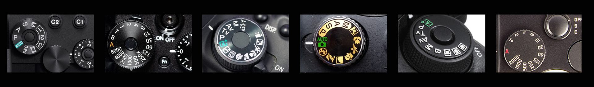 The upper part of any modern digital camera with an option for manual settings features a round selector dial with some basic symbols.