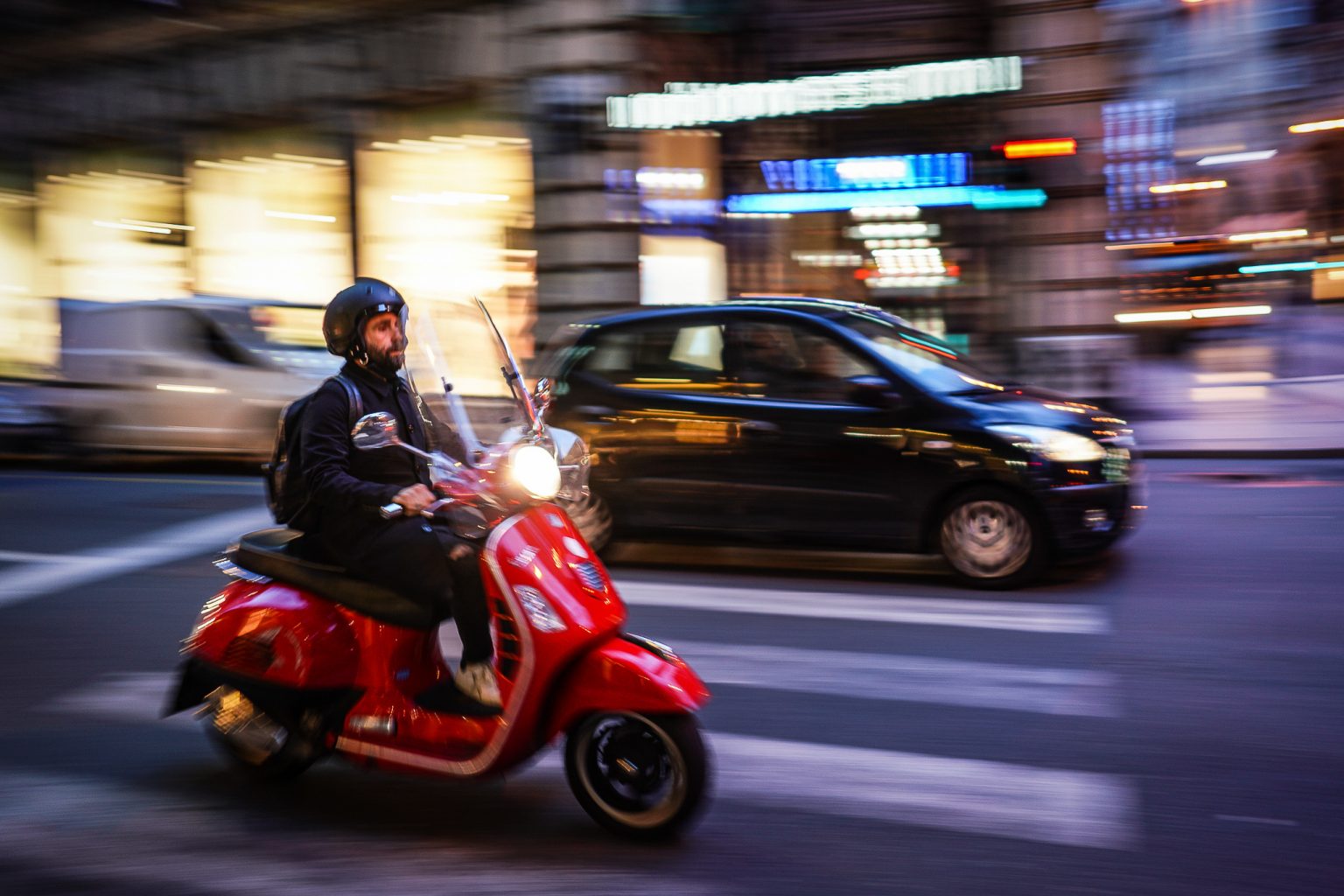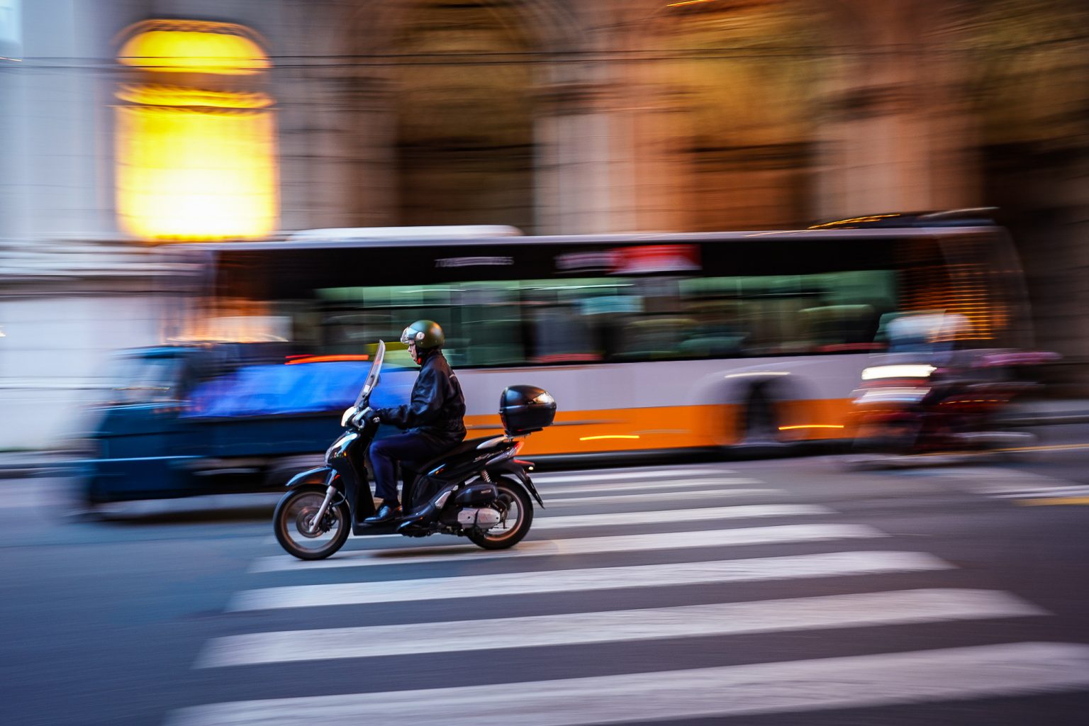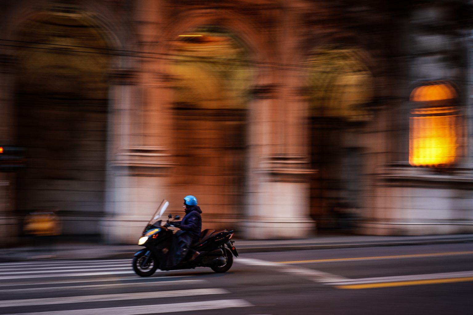The next series of photos was taken during an evening walk in Genoa. Camera Sony A7Rmk3, lens Sony 28/2. Shutter speed priority 1/20-1/30 sec with Auto ISO. My purpose was to recreate the typical Italian atmosphere with the small and fast mopeds whizzing by every second of the day.