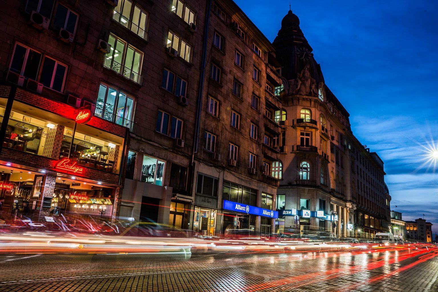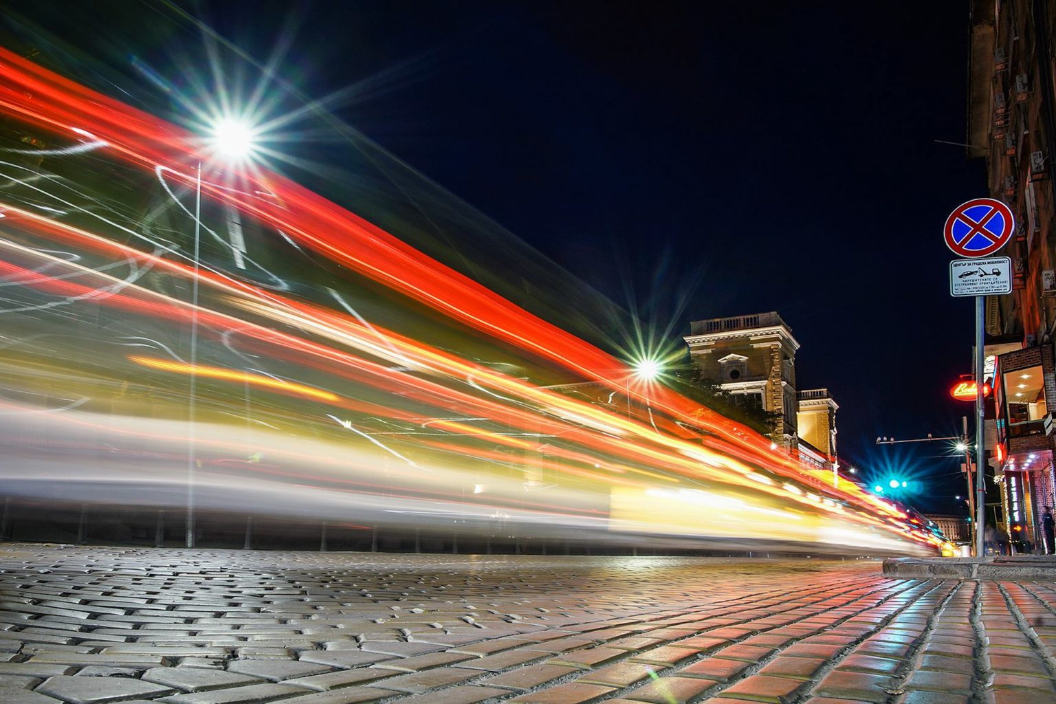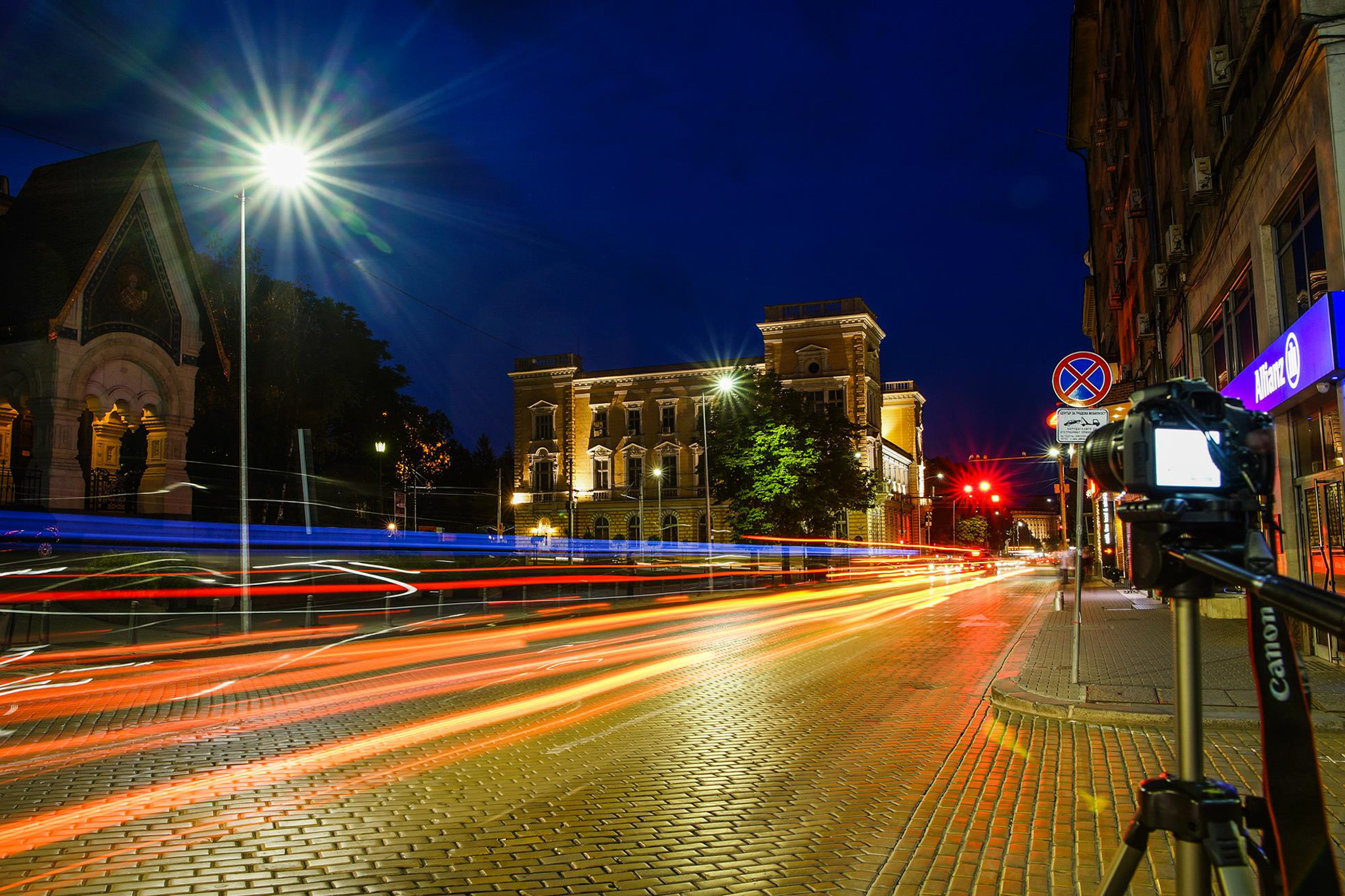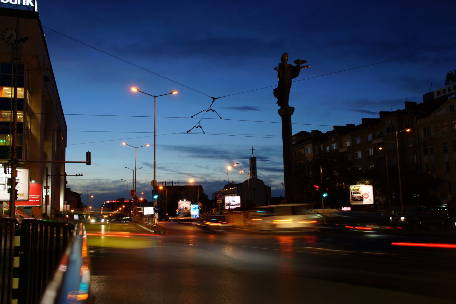 - Set the shutter speed and the aperture depending on the general illumination of the scene so that you can avoid having areas in the photo which are too dark. The best results can be obtained after sunset when there is still some light coming from the sky. You can select shutter speeds from 3-4 sec to 20-30 sec depending on the capabilities of your camera and the desired result. If you close the aperture more, you will have star-shaped light effects from the lights with constant position but you will have to reduce the shutter speed respectively. Other combinations which are suitable for shooting moving lights in the city at dusk are – shutter speed 5 sec and aperture 11, shutter speed 10 sec and aperture 16, shutter speed 20 sec and aperture 22 and so on. Use the lowest sensitivity setting to avoid noise in your photograph.