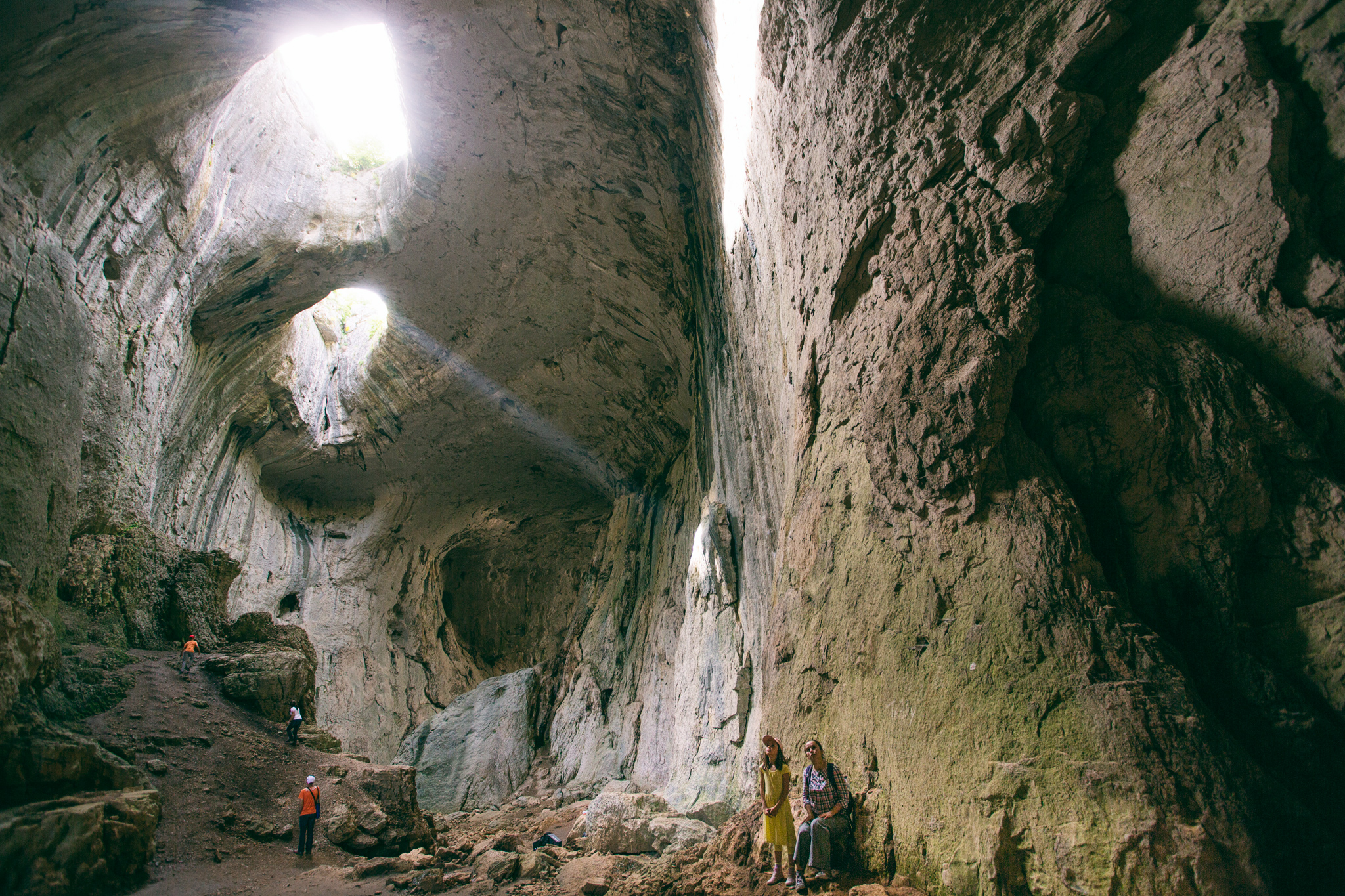 The human figures give us a sense of the dimensions of the cave. Without them it would be difficult to assess the size of the cavern. In the next photograph the hut can be used to estimate the height of the mountain.