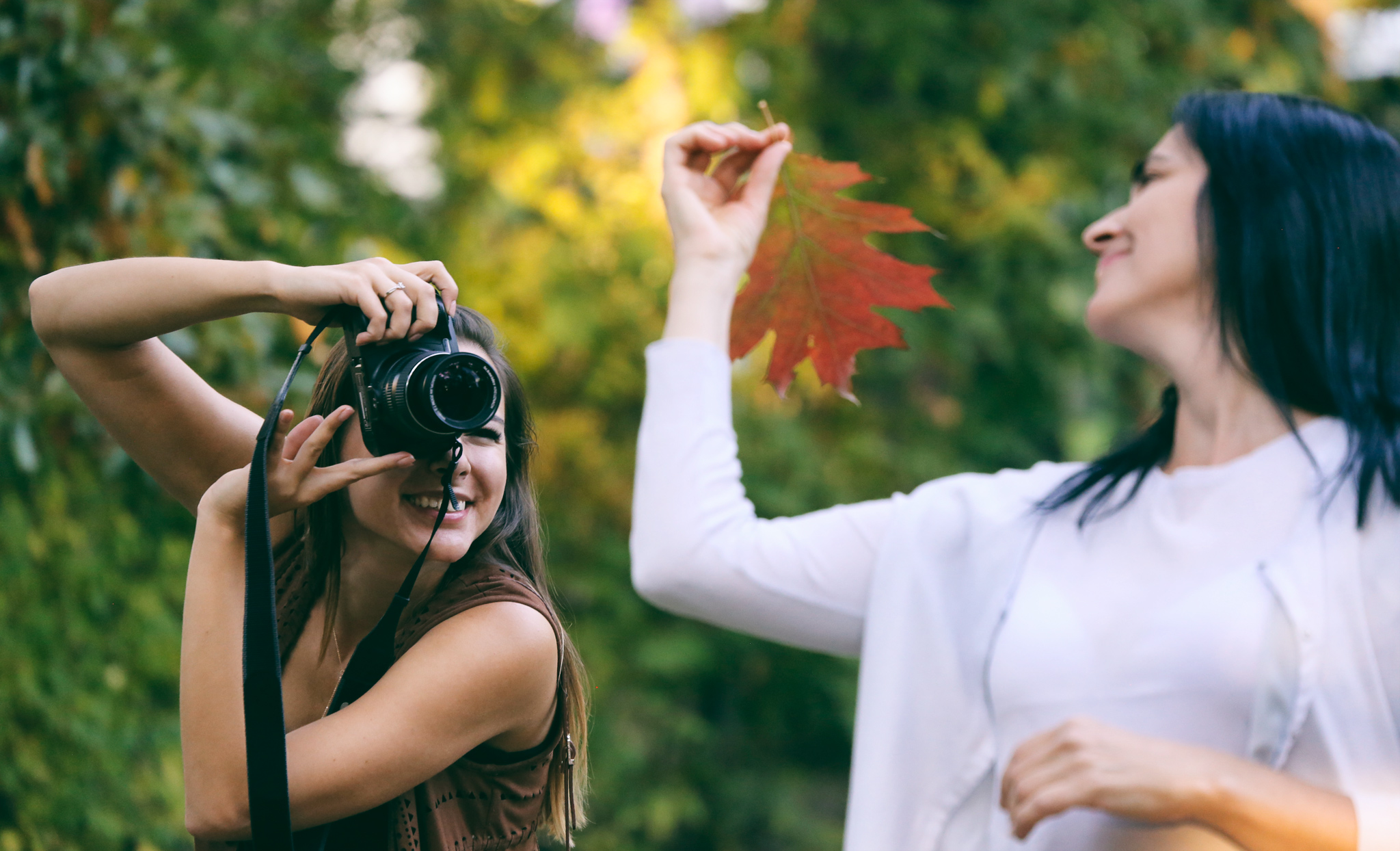 Often in photography classes we ask the students to hold leaves, grass, scarves or other objects close to the lens in order to create a foreground. It does not need to be distinct, it could be just a spot, but the purpose of the spot is to convey to the viewer the sense that there is something standing between the photographer and the object. This creates a sense of volume and space. Here is the effect you achieve having a branch with leaves in front of the camera.
