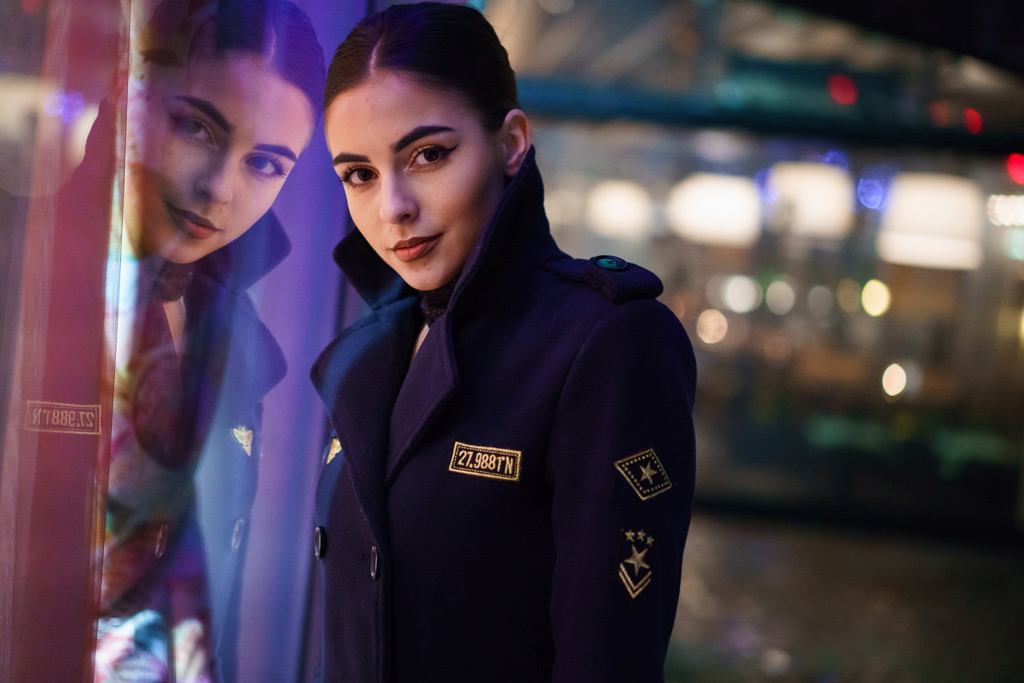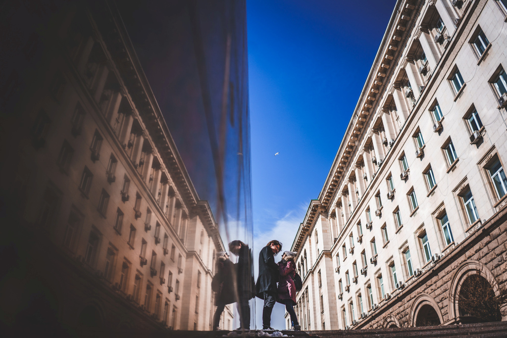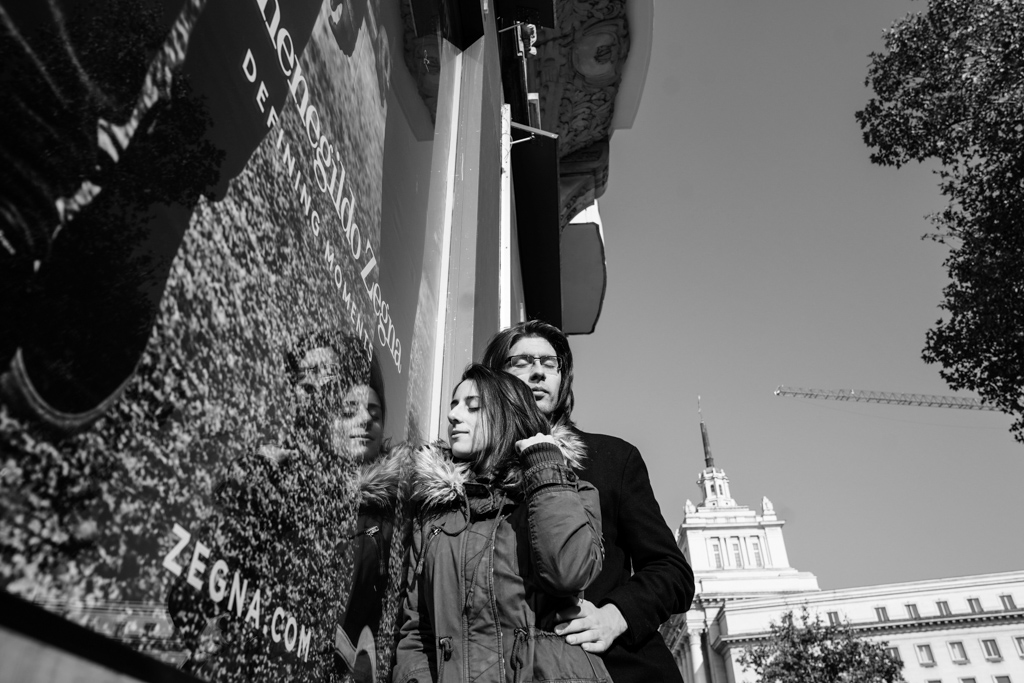 The big city provides hundreds of possibilities for different points of view, playing with lights and shadows, contrasts and various backgrounds. They are all around us, we just have to be able to find them. The shop window is a great reflective surface, and the movement creates the dynamics and mood in the frame. If possible, use a tilting display if the camera has one, for a more interesting point of view. The burst photo mode and tracking AF will help you take a few shots then choose the best one. The black and white vision in this case is appropriate because it graphically conveys the lines of the urban landscape. In the video below you can see the shooting process and the finished shots + a street bonus for the finale 🙂