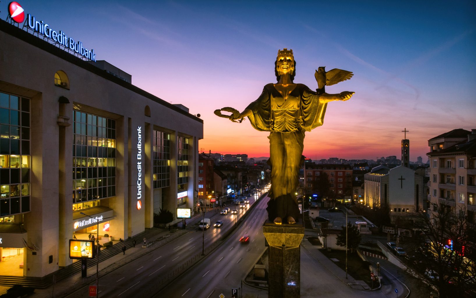 Blue hour is the time after sunset, but before complete darkness. This time is very suitable for photos, especially in urban environments. Because the sky is inky and the warm light from the buildings, from the headlights and taillights of the cars, from the street lamps, contrasts wonderfully against this blue-purple background. Unfortunately, this “hour” in our latitudes is not close to an hour – even on the longest summer days is about 15-20 minutes. So we need to be prepared in advance for these minutes.Let’s know when they are – there are applications for android that show in the respective day, in the respective place from how many to how many is the “blue hour”. Due to the low brightness, it is good to shoot from a tripod, but it is also possible at a higher ISO, with stabilized optics by hand. Some of the photos are taken with a drone, and if there is no wind, it stays stable in one place and allows you to take pictures at speeds of the order of 1-2 seconds.